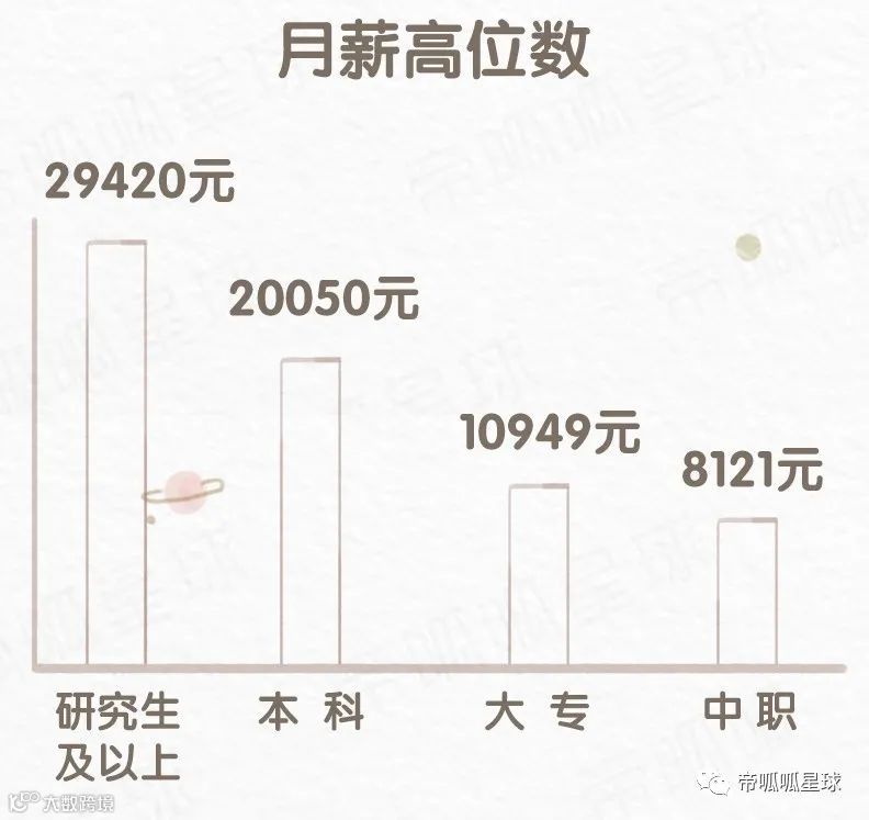 研究生的高位数可以达到将近3万元,大学本科的高位数是2万元。