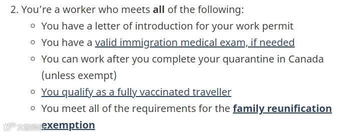 加拿大工签(开放或封闭式)持有人的直系亲属即使没有接种加拿大认可疫苗,也可以随行或单独入境加拿大。