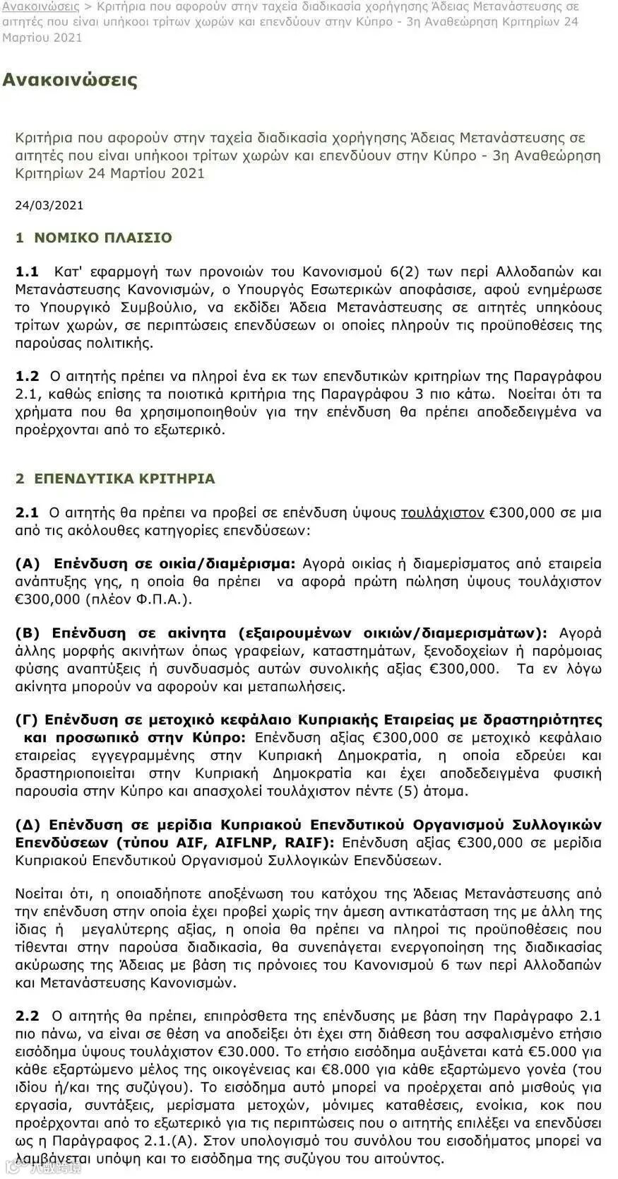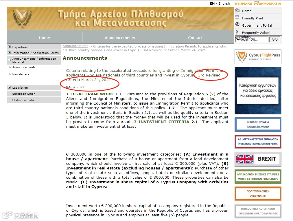 除了投资入籍项目,为了吸引国际资本,塞浦路斯国家内政部于 2009 年 5 月 7 日正式引入“买房拿永居”的移民政策。并于2013年5月和2016年2月做出了修正,2021 年 3 月 24 日,塞浦路斯移民局官网更新了办理塞浦路斯永居政策,30 万欧一步到位拿绿卡,新增 3 种投资方式,取消银行开户及定存要求,即日起执行!