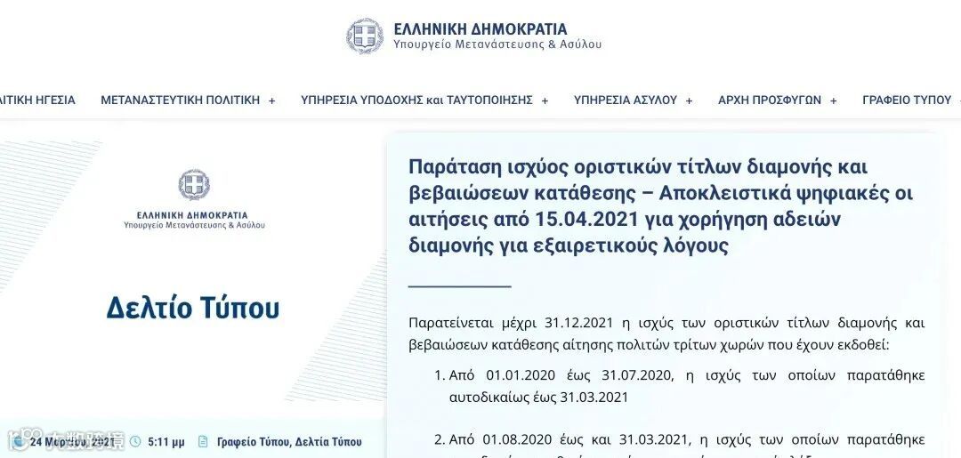 受新冠疫情影响,希腊移民局近日再次调整居留许可的截止期限,根据居留不同到期时间分别进行了延长。