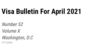 3月12日,美国国务院(State Department of the U.S.)签证办公室发布了2021年4月份的签证公告牌。