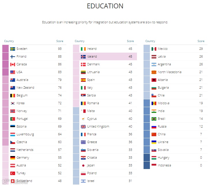 *移居融合政策指数是一份旨在研究移居目的国家政策对移居接纳程度的综合研究报告,移居政策友善程度分成四大类:完全融入、临时融入、法律上平等、移居未能融入。