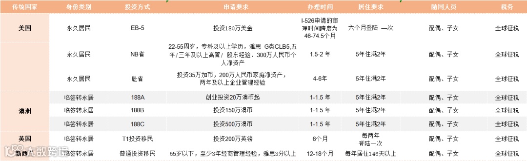 而选择走投资移民身份的申请人一般是冲着五个主流移民国“美加澳新英”去的。
