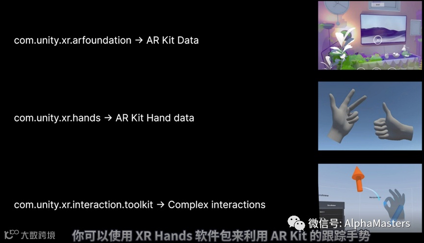 1)Vision Pro支持移植Unity的VR应用和游戏,或者创建一个全新的沉浸式体验,将玩家的环境替换为内容开发者自己的环境。用Unity Poly Spatial移植现有应用或开发新应用非常简单直接,只需几步就能看到项目运行在vision Pro上。这种创建方法类似于现有创建VR游戏的方法,可以很容易地建立vision OS游戏库。而且因为使用通用渲染管线(URP),支持注视点渲染foveated rendering等特色功能,图形显示体验会显著改善、更加逼真,是完全沉浸的VR体验。而且因为手部跟踪和手势识别取代VR控制器的特点是Vision Pro脱颖而出的关键。Unity的XR Interaction Toolkit带有手部追踪功能,也可以用 Unity Input System 的内置系统手势,借助XR Hands 软件包获取原始的手关节数据,用于自定义的交互设计。例如,已经在Apple Arcade众筹成功的游戏《What the Golf?》就已经在利用Poly Spatial平台移植到vision OS系统。