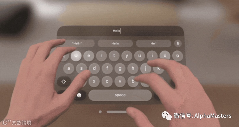 在AR/VR刚兴起时,业内就几乎确认了裸手交互是未来AR/VR的发展趋势,只是要想做好手势交互的确认度,是一项极大的技术难题。也正由于技术的受限,裸手交互这一方式就一直都未被完整的发挥出来。由于Vision Pro配备了四颗用于手势识别的摄像头,可以检测腰部以下的手势,用户还可以把手放在膝盖上进行操作,甚是轻松自如。还值得一提的是,Vision Pro已经可以实现虚拟键盘打字的方式。