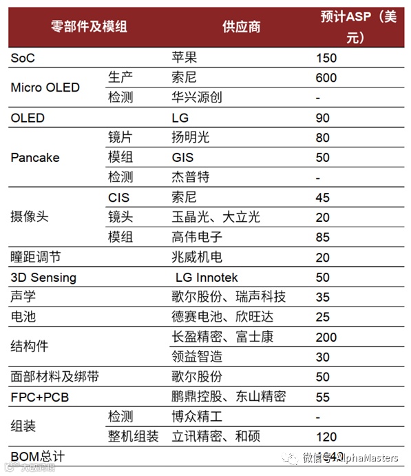 3)第一代产品中成本占比最高的便是Micro OLED屏幕,目前大尺寸Micro OLED只有索尼供应,良率也较低。苹果后续大概率会引入中国的视涯等供应商,随着越来越多的产品上Micro OLED屏幕以及越来越多的供应商参与,这块成本可以得到大幅的下降。