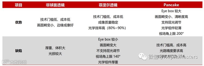 相比PICO双镜片的方案,苹果采用了3片镜片,从而实现更好的光学效果。相比于1P、2P Pancake设计,3P Pancake光机模组不仅能带来更高的清晰度、更小的畸变以及色差之外,经过多次折返其厚度还能进一步缩短。但劣势也比较明显,会增加工艺难度以及物料成本、重量,可见在光学方面,苹果为了实现最好的视觉效果,选择了工艺最难的方向。