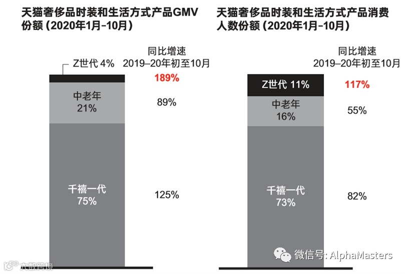 千禧一代消费额占天猫奢侈品时装和生活方式市场的70%以上,而Z世代是增长最快的消费人群。