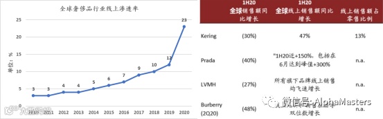 二、奢侈品电商渗透率与全球电商渗透率一样进入快速提升周期