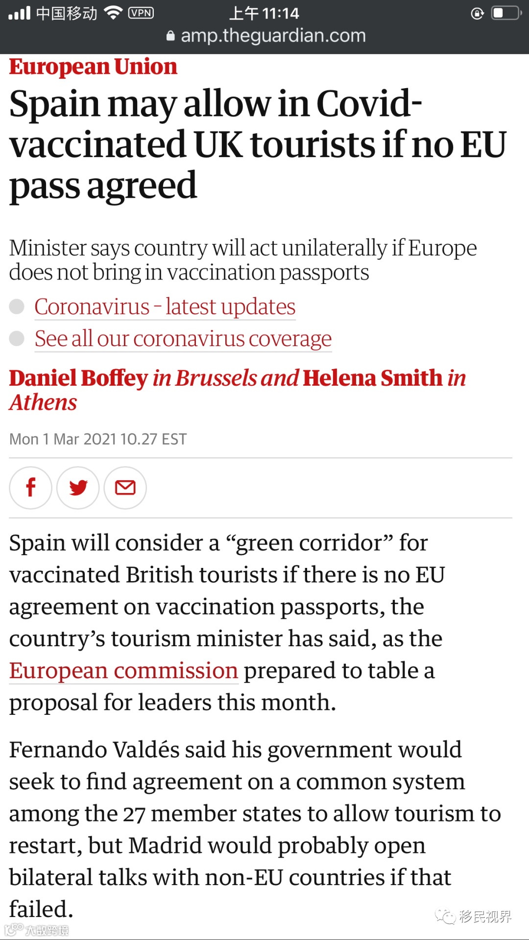 该国的旅游部长曾表示,他的政府将寻求就27个成员国之间的共同制度达成协议,以允许旅游业重新开始,但如果失败,马德里可能会与非欧盟国家进行双边会谈。