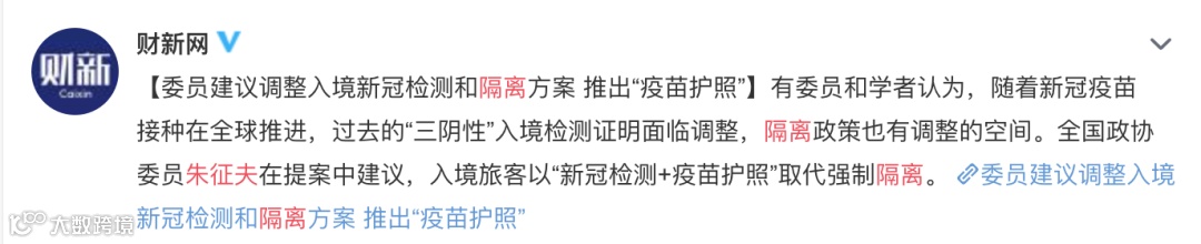 之前,国内就曾有提议称建议用新冠病毒检测加上疫苗护照来取代强制隔离政策。