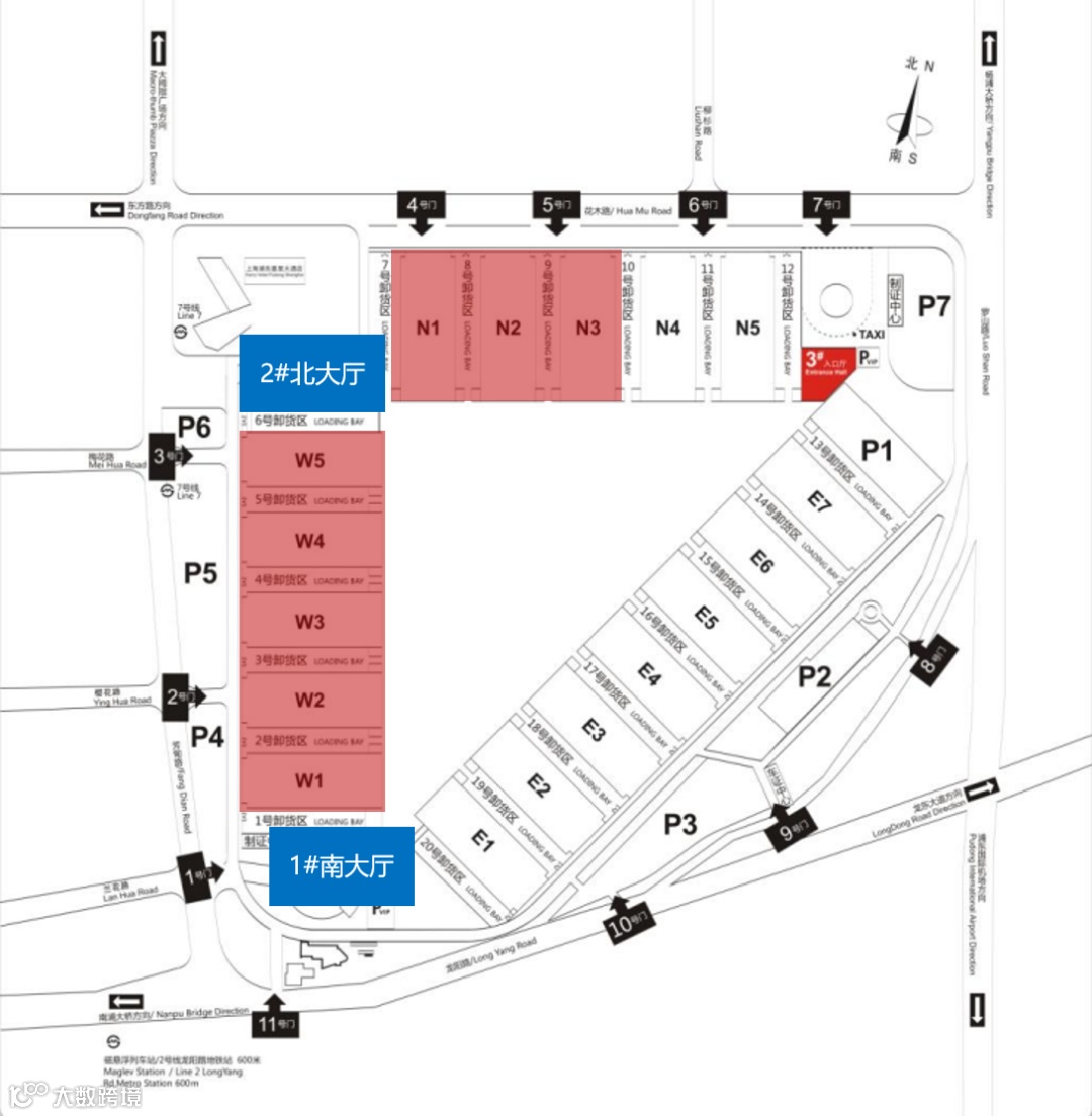观众入口:1号入口大厅(南大厅)、2号入口大厅(北大厅)