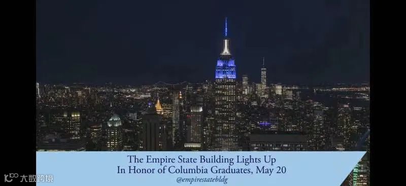 帝国大厦庆祝哥大学生毕业亮起的蓝光