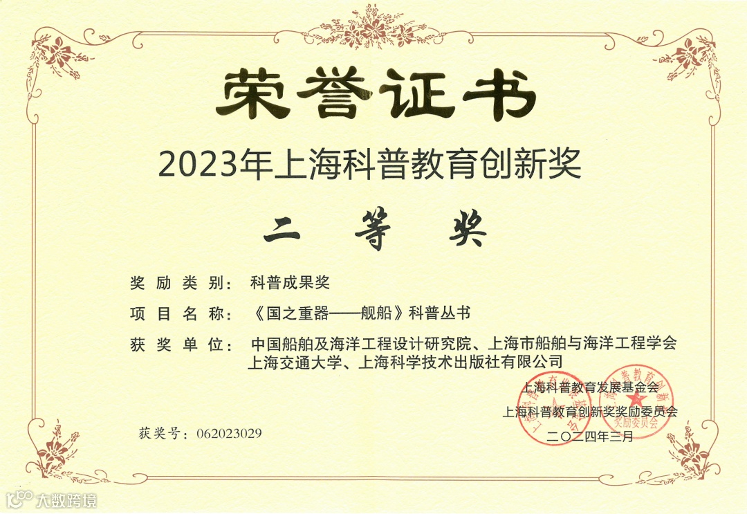 近日,第十二届上海科普教育创新奖颁奖典礼在上海儿童艺术剧场举行,表彰本市为科普事业做出突出贡献的个人和组织。其中,由中国船舶及海洋工程设计研究院、上海市船舶与海洋工程学会、上海交通大学主编,上海科学技术出版社出版的《国之重器》舰船科普丛书获得科普成果奖二等奖。