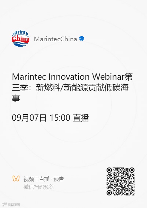 此次webinar我们还将在视频号上同步直播,您可关注“MarintecChina"视频号,扫描上方↑直播预告二维码进行预约。