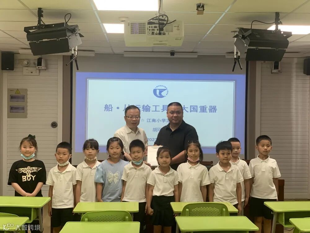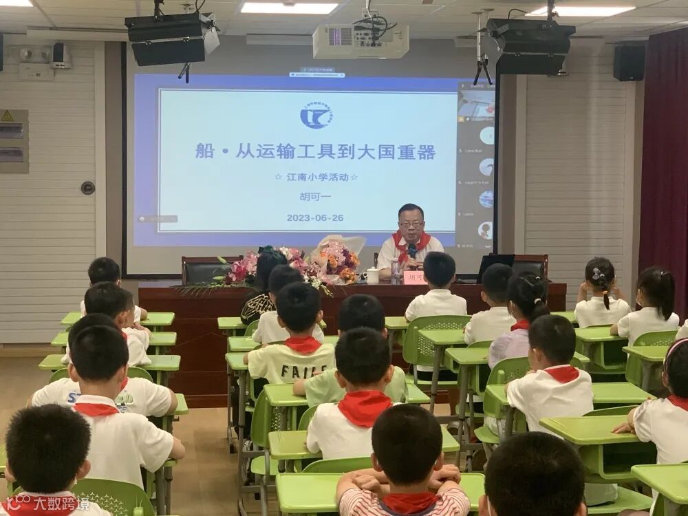 胡主任在讲座上向同学们展示了大量船舶的图片,涵盖了几乎所有的常见船舶类型。他通过问答的形式,调动同学们的兴趣和活跃性,将江南厂的历史与经典船型的设计建造特点相结合,以通俗易懂的语言,向在座的同学们普及船舶舰船的科普知识。讲座上,同学们积极思考,踊跃发言,让胡可一颇为惊喜,活动后他表示很惊讶现在孩子们能在小学就有这样广的知识储备,这离不开日常的接触和学校的课题教育。之后,胡可一还在校长陪同下参观了江南新村小学的各个海洋船舶类兴趣教室、水手结体验室、船模教室、VR船舶模拟舱等。