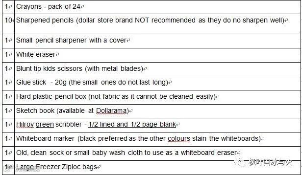 今年就相对简单,只需要准备12项(截图如下),基本都是常用物品。和国内学习用品准备最大的不同,可能就是不用准备超大号书包,这边一年级是没有教材的,都是老师随机打印的学习资料,所以要准备一个大号的带拉链的文件袋(Large Freezer Ziploc bags)。