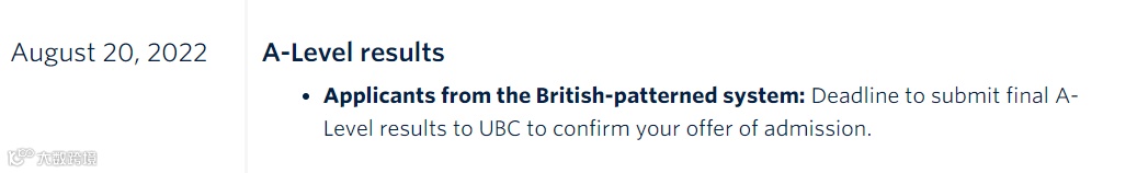 UBC:8月15日,使用A level成绩进行申请的申请者提交最终 A-Level 成绩以确认您的录取通知的截止日期。