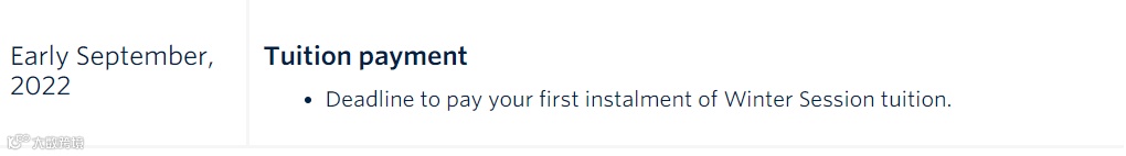 UBC:9月上旬—支付第一期冬季课程学费的截止日期。
