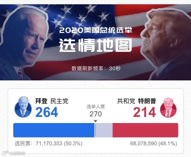 如今,还剩下几个悬而未决的摇摆州,如果没有下一场反转,那么拜登将会获胜。