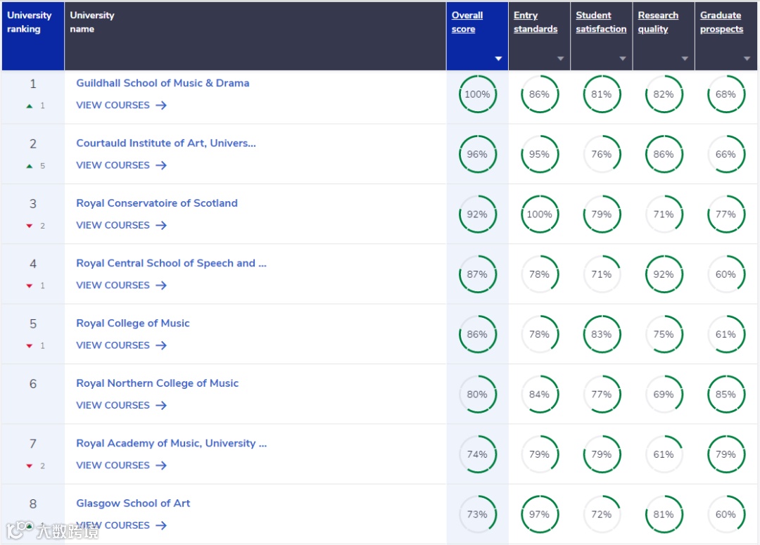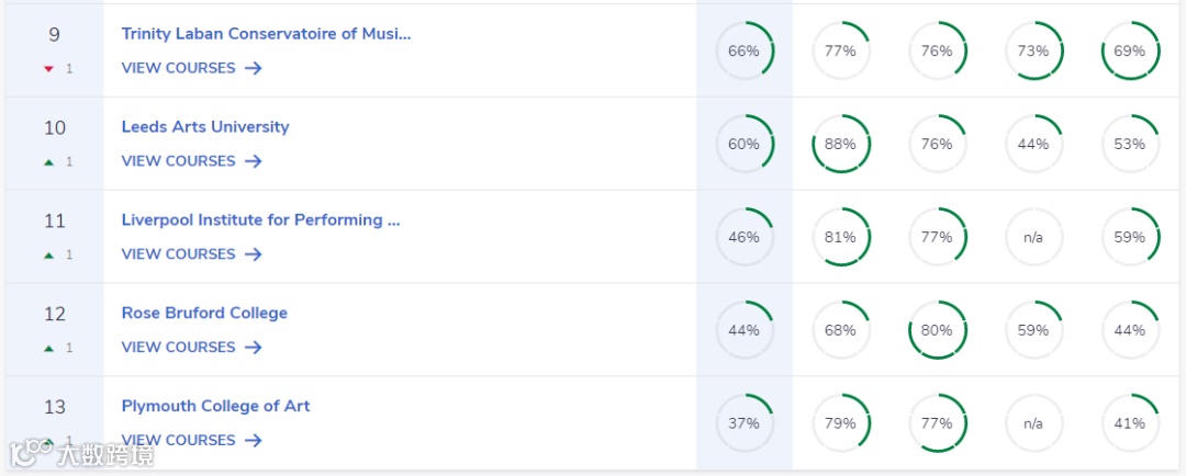 还有一个单独的艺术类院校排名,将13以艺术类出名的高校放在一起进行对比;