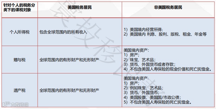 在美国,纳税人分为三种类型,不同类型的纳税人征税范围不同: