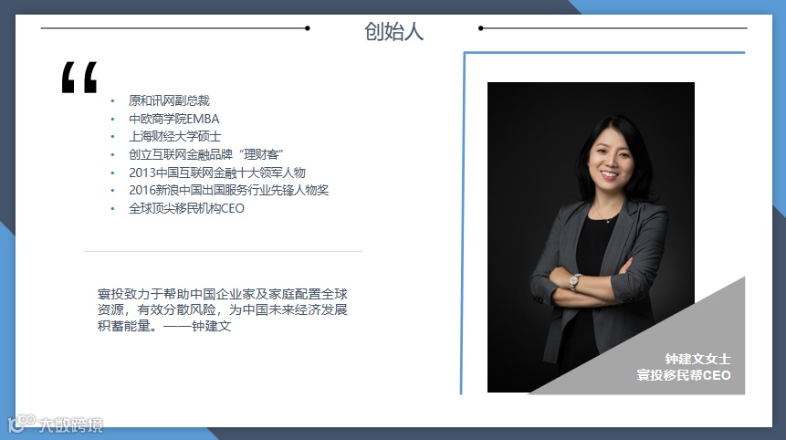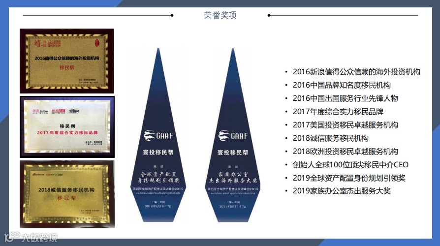 目前为止,我们已经成功地为超过1000个中国家庭提供了全球身份规划及全球资产配置的服务。并与东亚银行、中信银行、阳光保险、碧桂园等在内的50多家大型海内外金融机构及私人银行达成总部战略合作,提供专家支持服务。