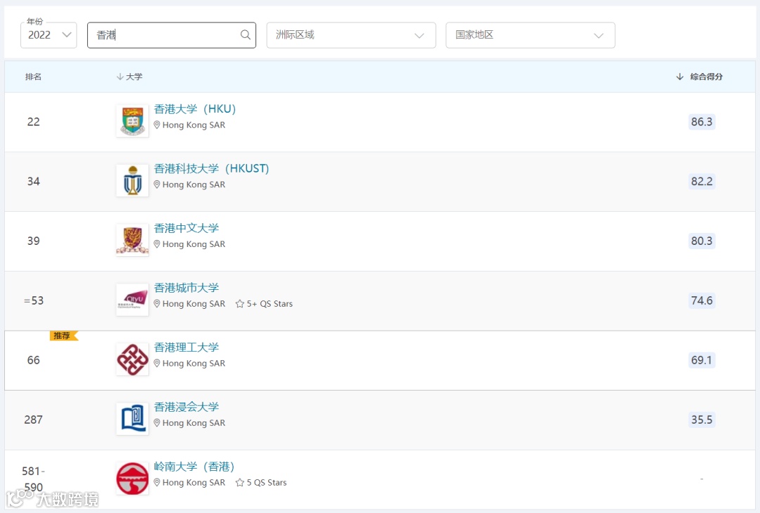 (2022 QS 排名)