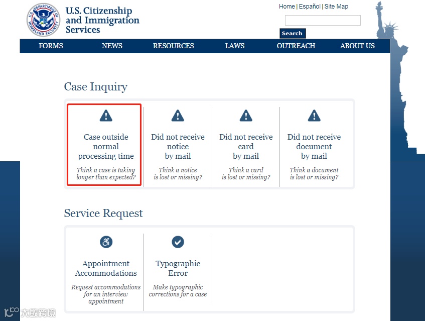 如果申请人的审案时间已经超出了移民局公布的审案时间跨度范围,即优先日早于审案进度表上的案件查询日期,那么申请人就可以在https://egov.uscis.gov/e-Request/Intro.do在线提交询问申请,或致电移民局1-800-375-5283询问。