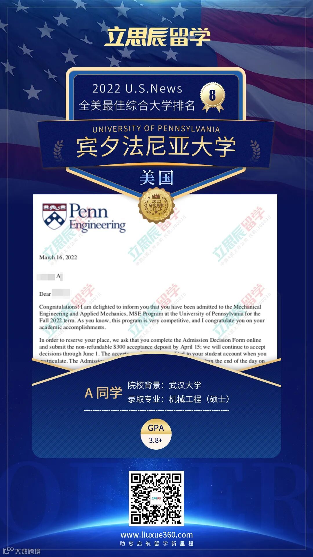 宾夕法尼亚大学名列2021福布斯美国大学排行榜第9名,2022U.S. News美国最佳大学排名第8名,2021U.S. News世界大学排名第13名,2022泰晤士高等教育世界大学排名第13名,2015年被普林斯顿评论评为十大梦想学校之一 。