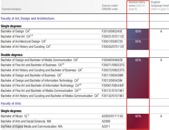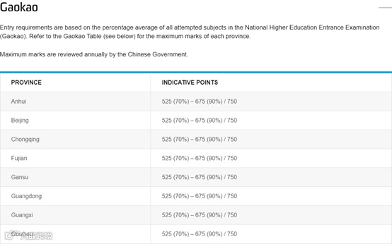 简单带大家看一下澳洲部分热门大学对高考的成绩要求: