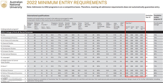澳洲国立大学会根据不同省份,对高考直录的同学有不同的分数要求,(总体上分为四类:上海、江苏、海南和其他省份),分数要求在525-690之间。整体来说,都要求学生高考成绩达到总分的70%,有的专业要求比较高,分数要求最高的是Bachelor of Philosophy (Honours),要求高考总分达到90%。
