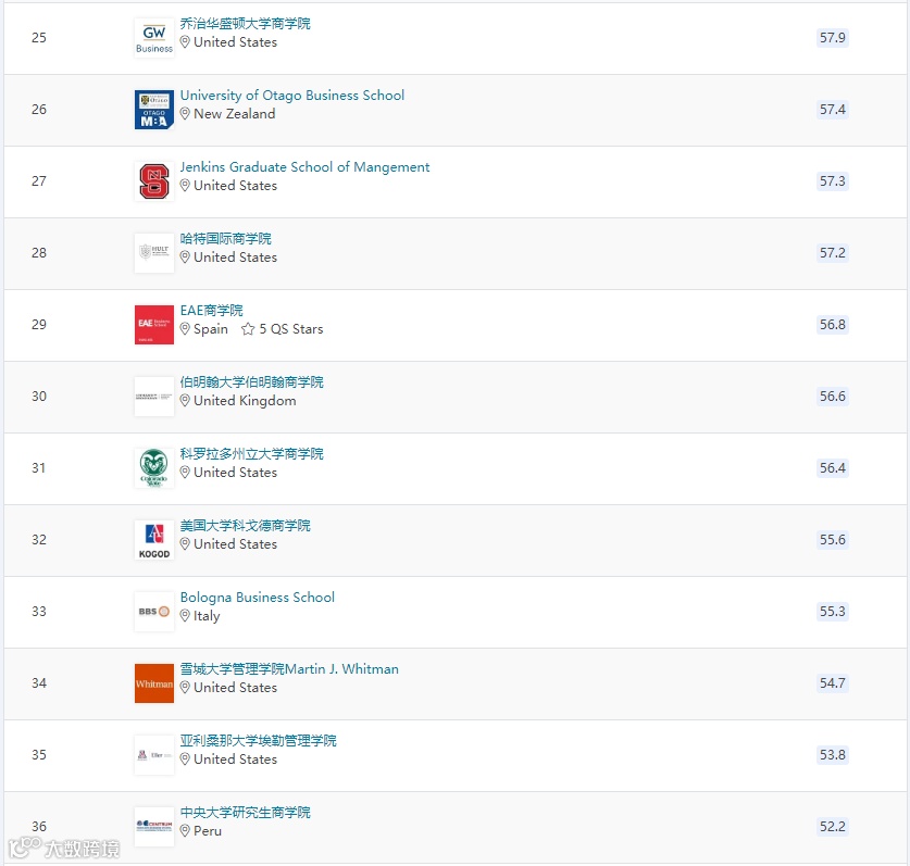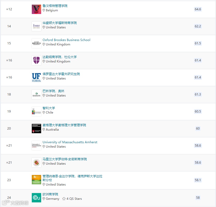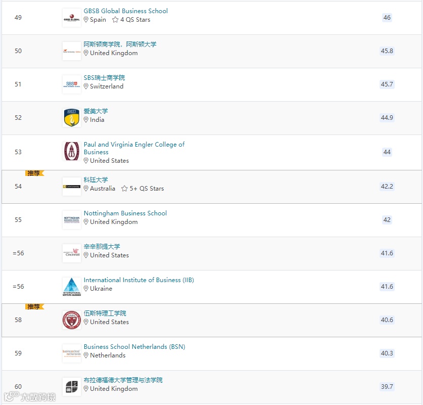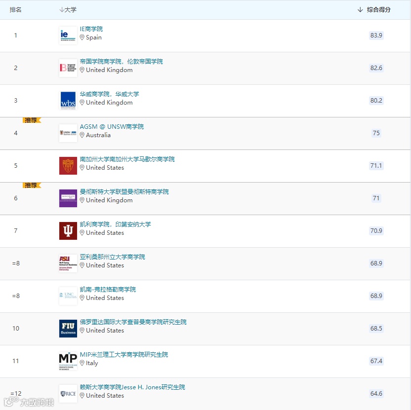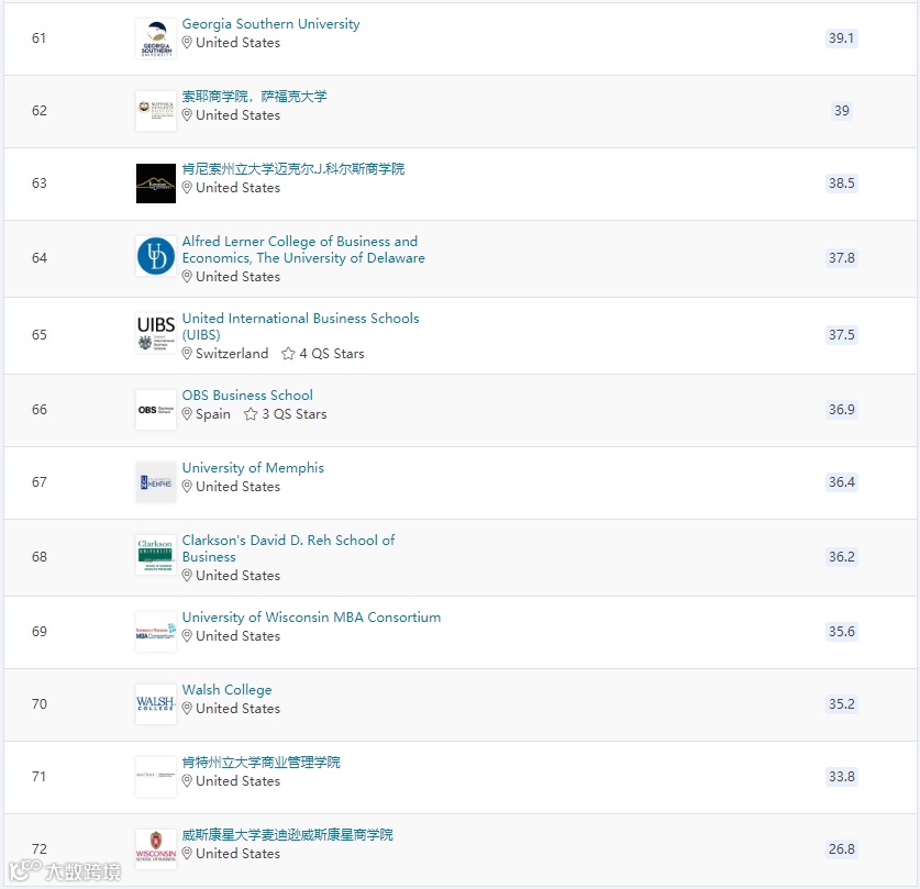 排名覆盖全球72个在线MBA课程,是QS史上最大规模的在线MBA排名。