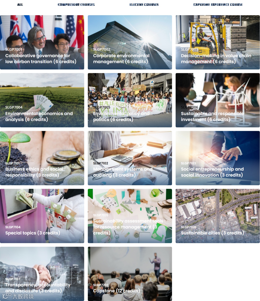 社会科学学院:可持续领导力及管治社会科学硕士(原名:企业环境治理社会科学硕士)。