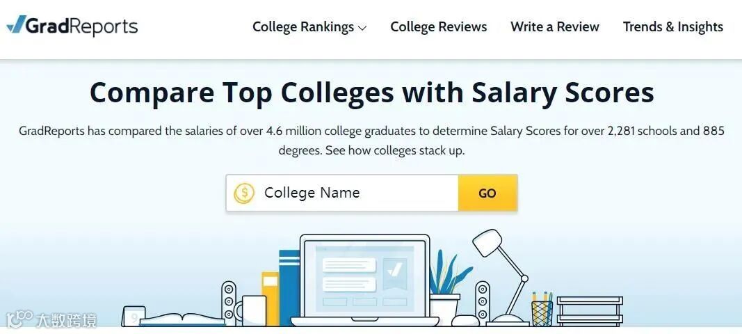 有一些网站是很重要的工具,比如GradReports,是第一个采用美国高校记分卡(College Scorecard)的大学专业薪水和债务中位数数据进行统计的大学的排名系统。数据来源为美国教育部,相对权威。你可以查看你所感兴趣大学的每个专业的薪资水平和评价,也可以根据自己确定的专业去了解相应的院校。