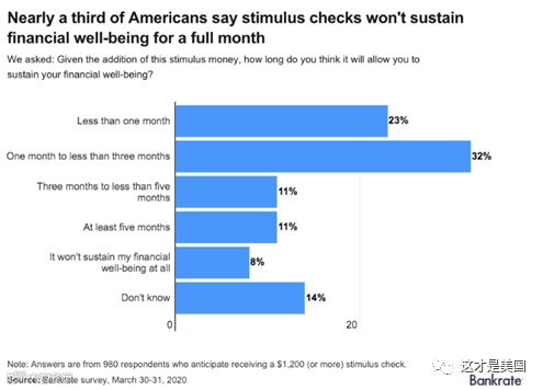以美国人平均卡里存款小于400美金来看,一旦失业,如果失业救济金还没到手的话,即使拿着政府发的这一千来块钱,加上口袋里的400,也还付不起公寓的租金。