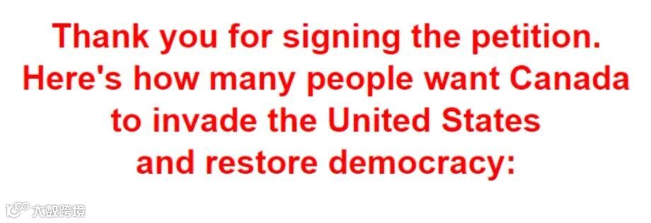 截止最近一次统计,该网站在线的请愿人数已经超过百万,近100 多万美国民众希望跨过美加边境,和加拿大人成为‘一家人'。