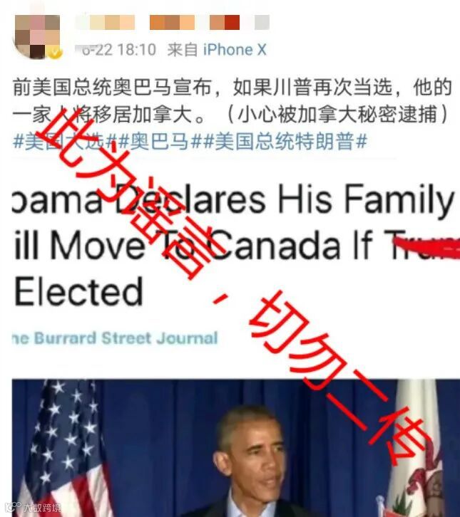 近期,一则网传重磅消息刷屏了美加很多新闻网站及推特,网曝美国前总统奥巴马亲自表示:如果特朗普继续连任美国总统,他(奥巴马)将携自己的家庭一起搬离美国,来到加拿大生活!