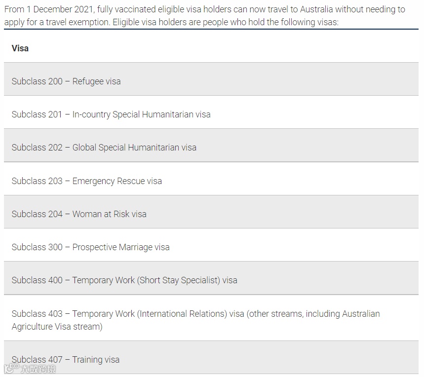 从12月1日起,完全接种过疫苗的签证持有者将被允许进入澳大利亚,无需申请豁免。