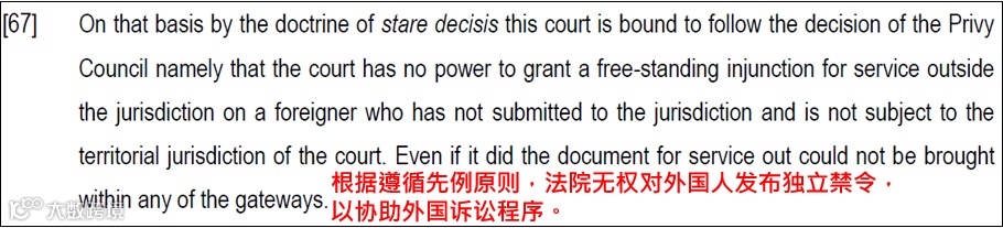 其一,曹贵子是不受东加勒比最高法院管辖的外国人。按照先例,法院无权对管辖范围之外的外国人或外国实体发布禁令。