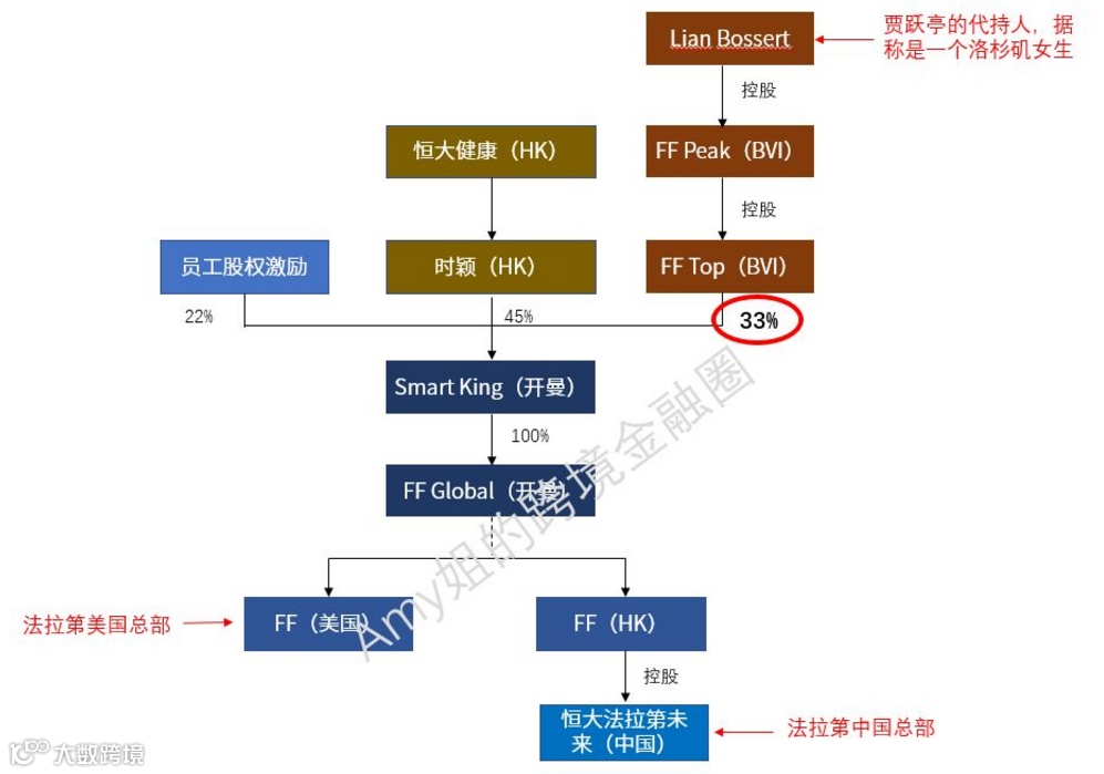 这里插句题外话,还记得欠债百亿的贾跃亭么,他也是通过两个BVI公司—开曼……最终持有FF 33%的股权。