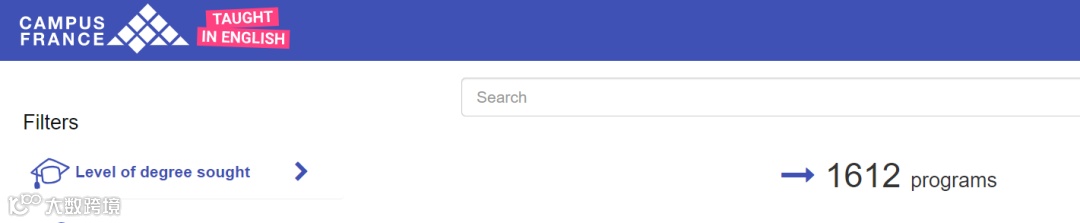 以法国为例,在法国高等教育署“Programs Taught in English”专题页面查询到法国英文授课项目共有1612个,2018年这个数字是1345,短短3年增设近300个。