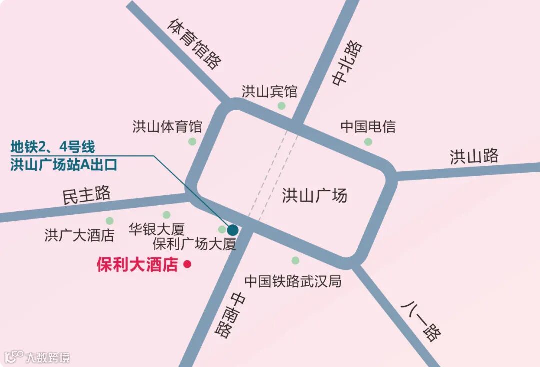 地铁:地铁2、4号线洪山广场站A出口保利大厦后面