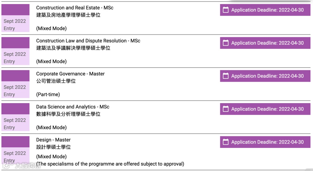 截止到今天,香港高校已经开放了很多专业的22Fall申请。