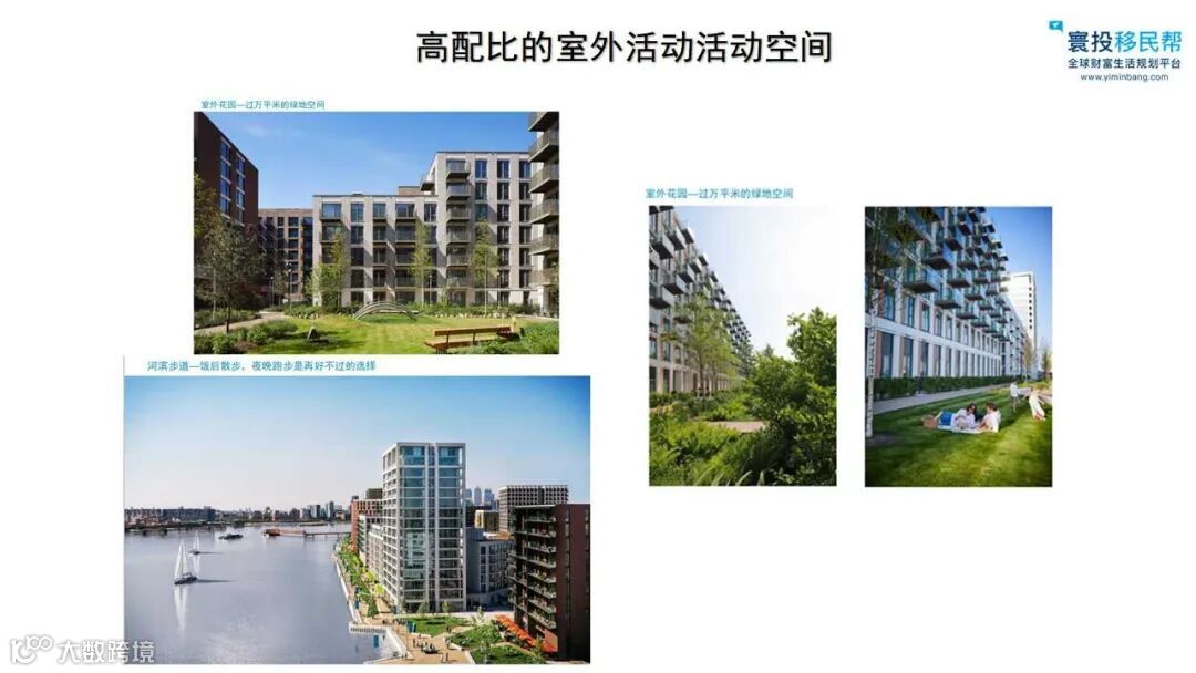 比如左边的City Island,它是在伦敦北边小岛上,建了一个很大的社区,并且在第二金融城金丝雀码头,也建立了一栋高楼。以及右下方的项目Embassy Garden ,它带有空中镂空泳池,该项目是在新的美食馆旁边,这也是整个欧洲 唯一一个带空中泳池的住宅项目。