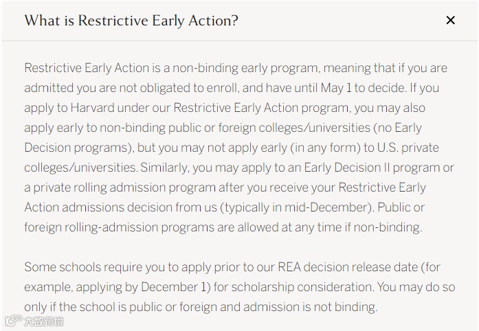 REA:全称Restrictive Early Action(限制提前行动)。