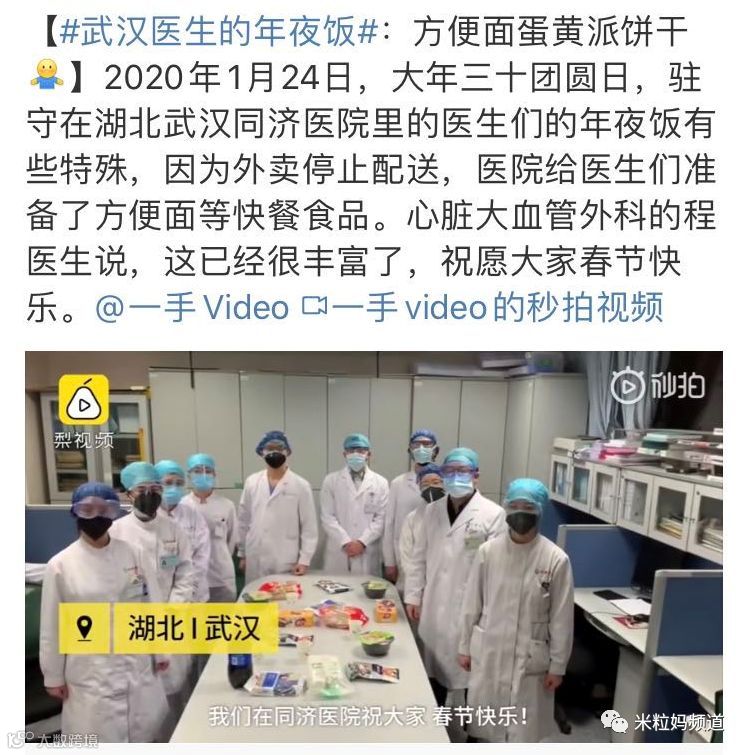 可是你知道昨天晚上,武汉的医生们年夜饭吃的是什么吗?
