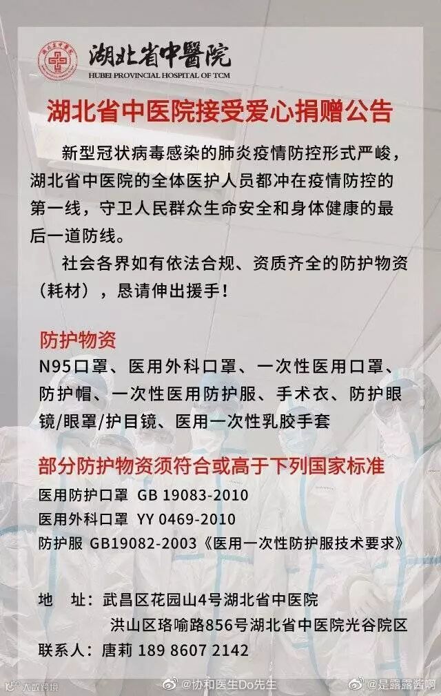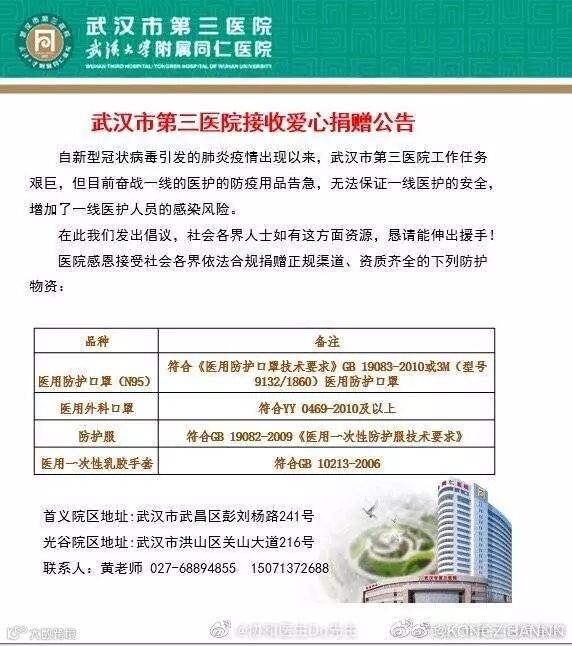 我们没有在武汉,或许无法对武汉的处境感同身受,但起码,我们还可以为武汉提供尽可能多的物资。为这一群华夏同胞,尽一份绵薄之力!