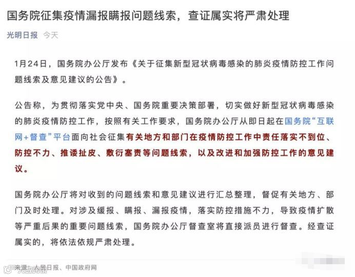 在武汉肺炎的这次事件中,国务院也已经出手,公开向社会征集线索,如果查证之后就会严肃处理。