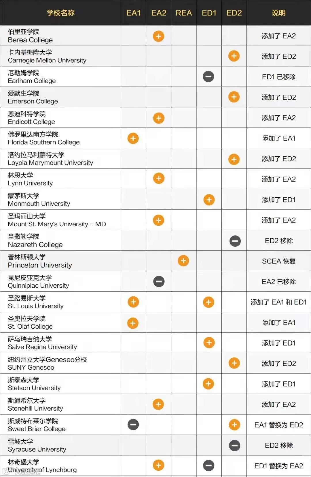 以下是部分美国大学早申政策的变化说明: